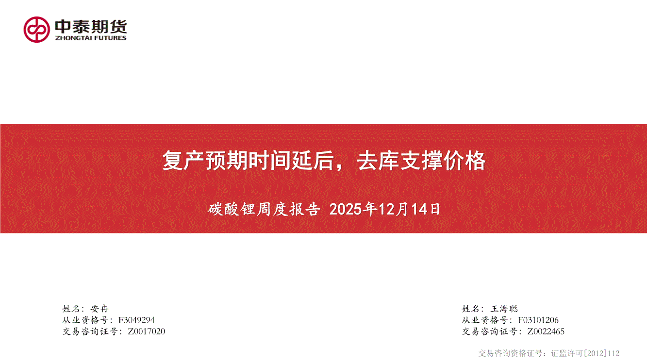 中泰期货-碳酸锂周度报告:复产预期时间延后,去库支撑价格-251214