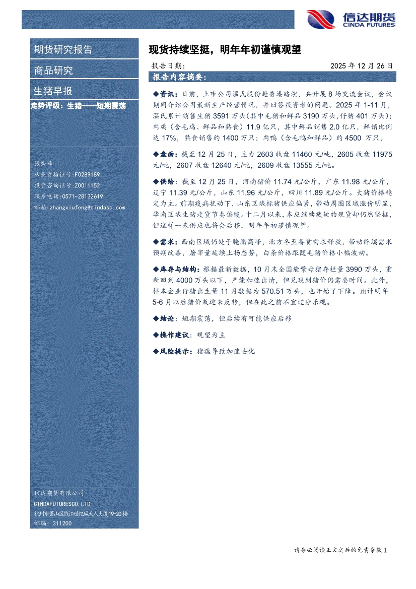 信达期货-生猪早报:现货持续坚挺,明年年初谨慎观望-251226