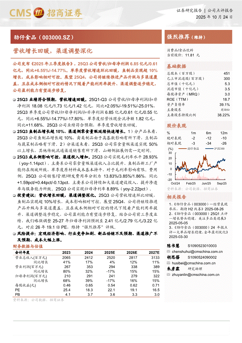 劲仔食品:招商证券-劲仔食品-003000-营收增长回暖,渠道调整深化-251024