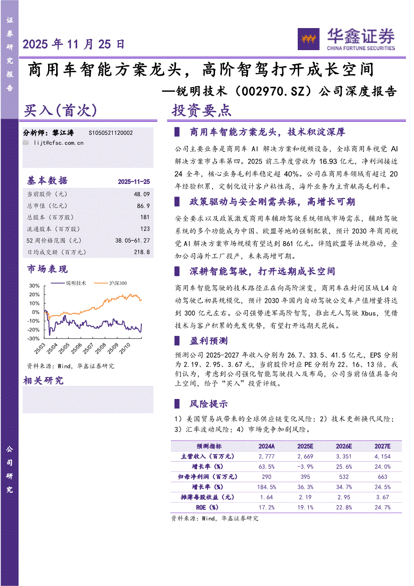 华鑫证券-锐明技术-002970-公司深度报告:商用车智能方案龙头,高阶智驾打开成长空间-251125