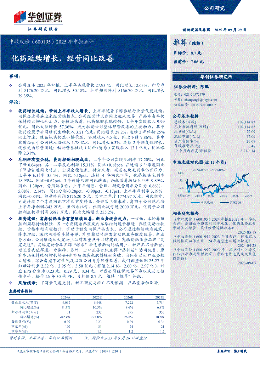 中牧股份:华创证券-中牧股份-600195-2025年中报点评:化药延续增长,经营同比改善-250929