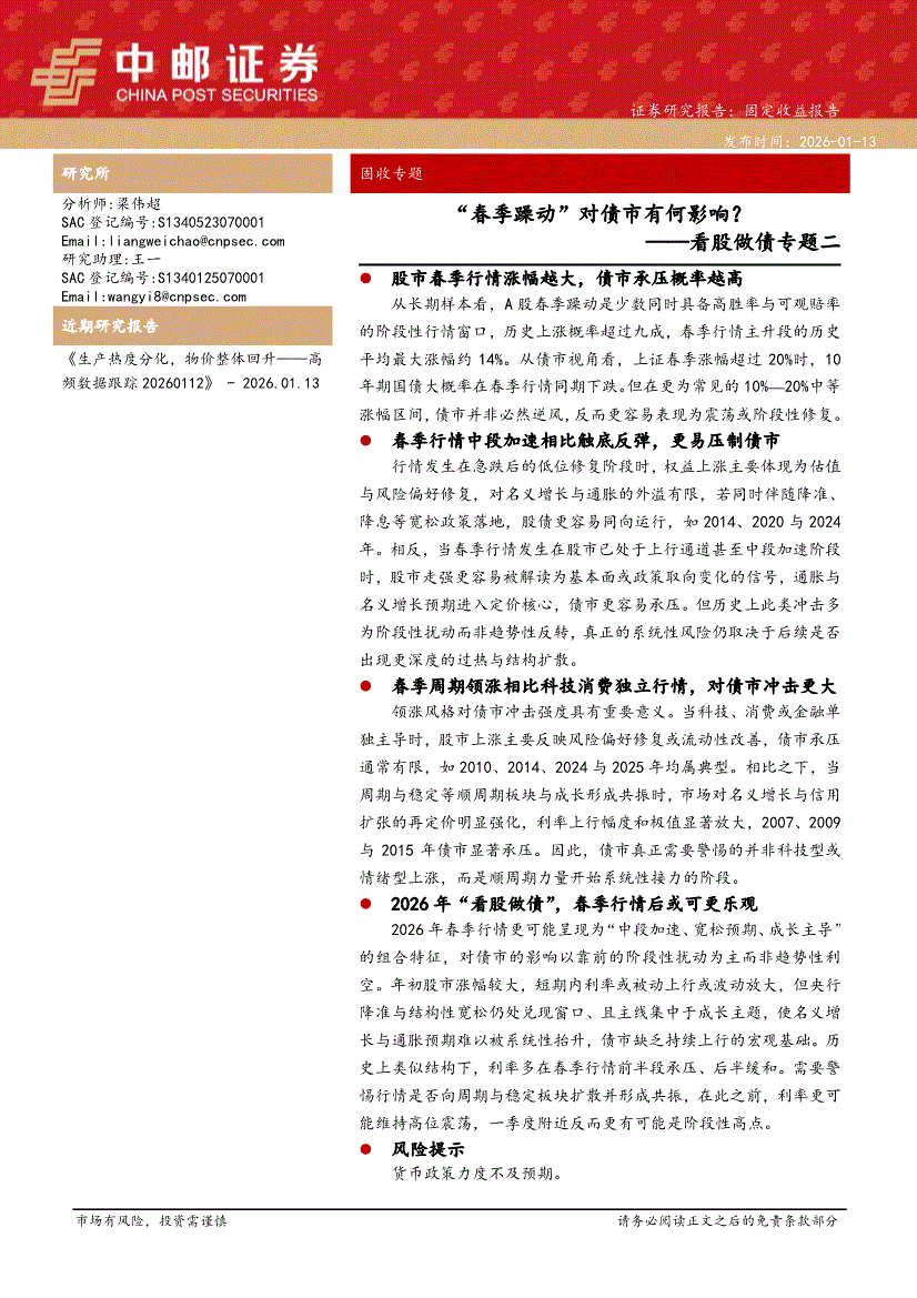 中邮证券-看股做债专题二:“春季躁动”对债市有何影响?-260113