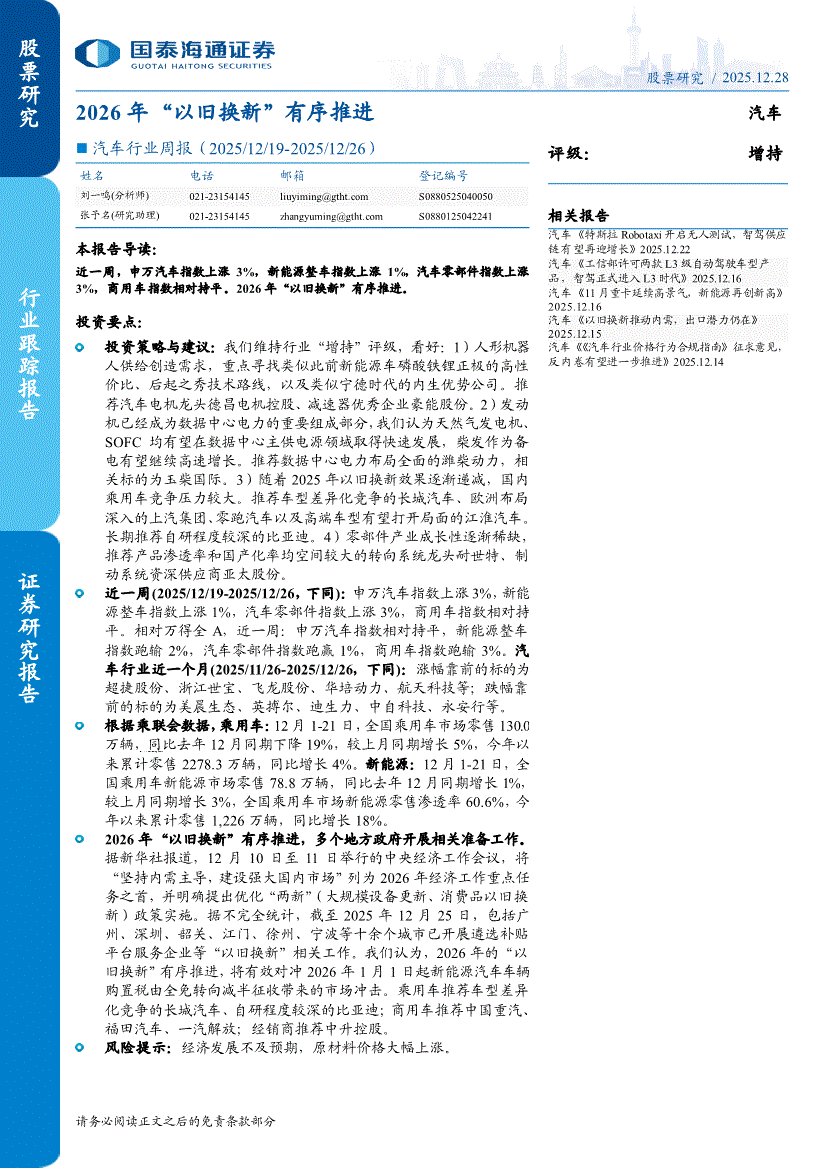 汽车行业:国泰海通证券-汽车行业周报:2026年“以旧换新”有序推进-251228