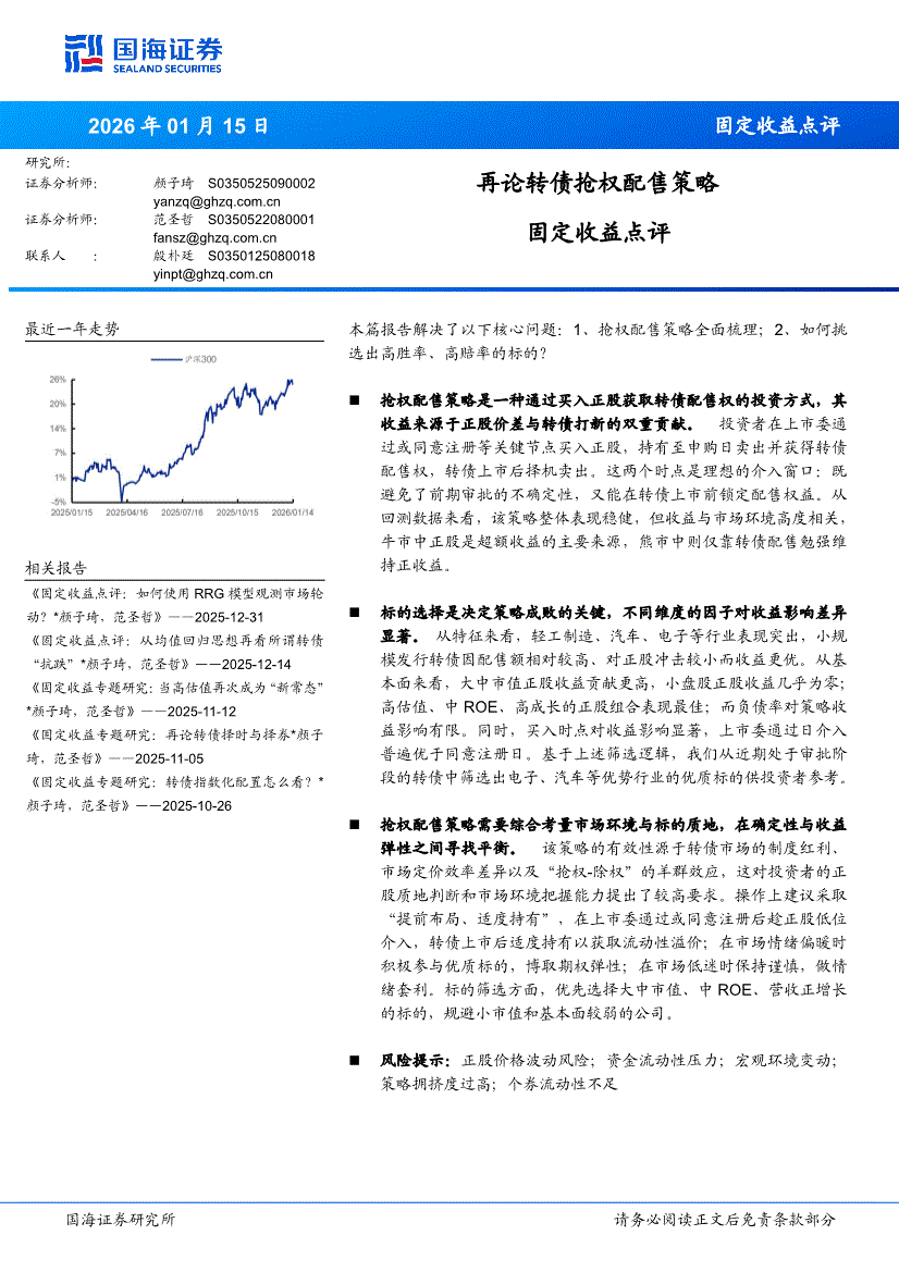 国海证券-固定收益点评:再论转债抢权配售策略-260115