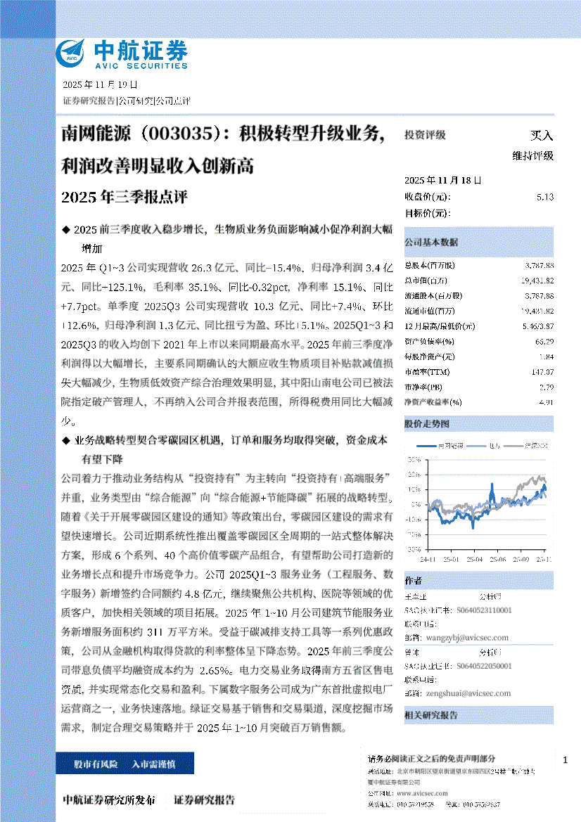 中航证券-南网能源-003035-2025年三季报点评:积极转型升级业务,利润改善明显收入创新高-251119