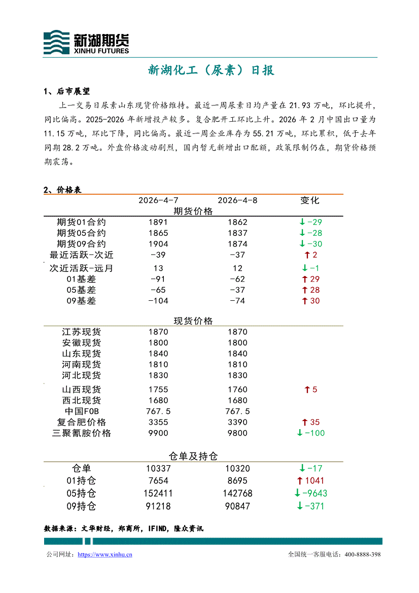新湖期货-化工(尿素)日报-260409