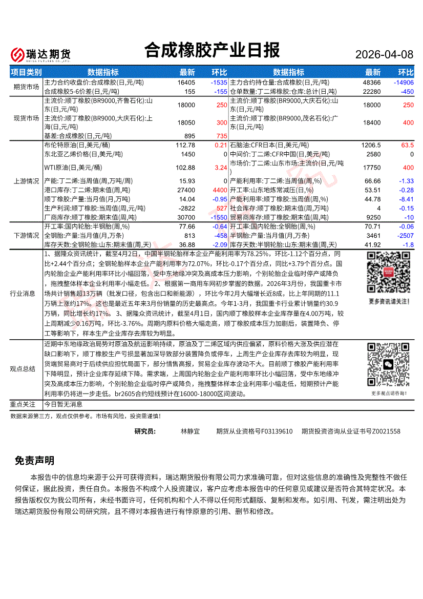 瑞达期货-合成橡胶产业日报-260408