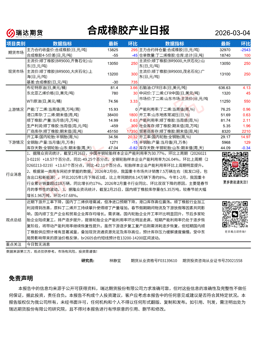 瑞达期货-合成橡胶产业日报-260304