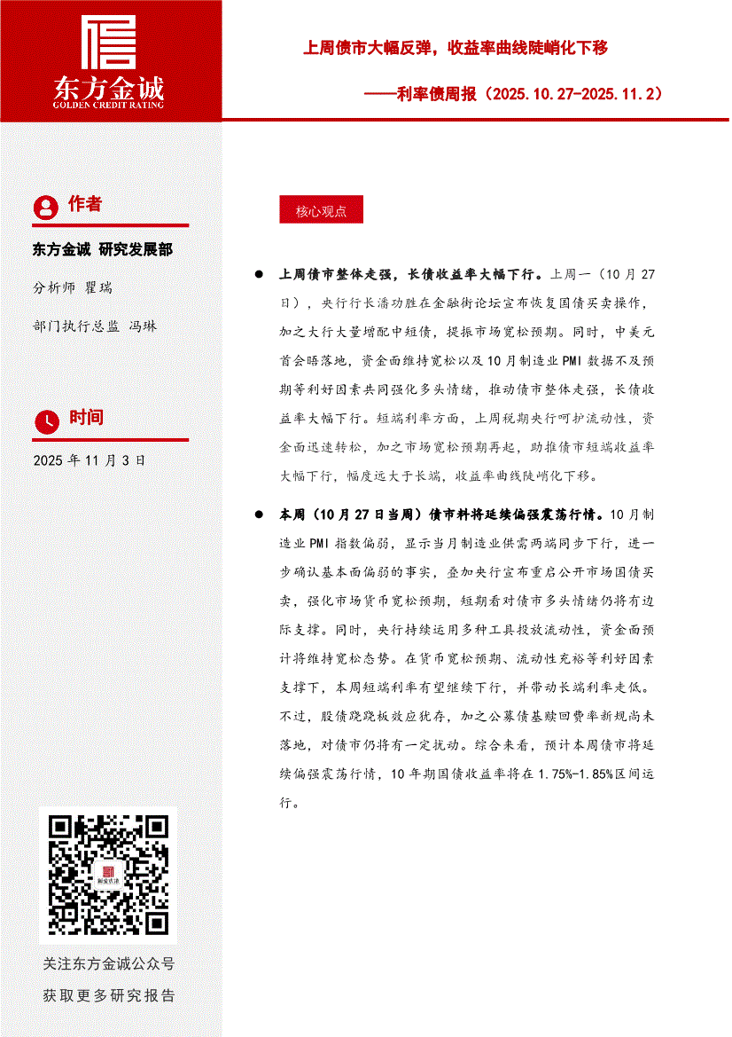 东方金诚-利率债周报:上周债市大幅反弹,收益率曲线陡峭化下移-251103