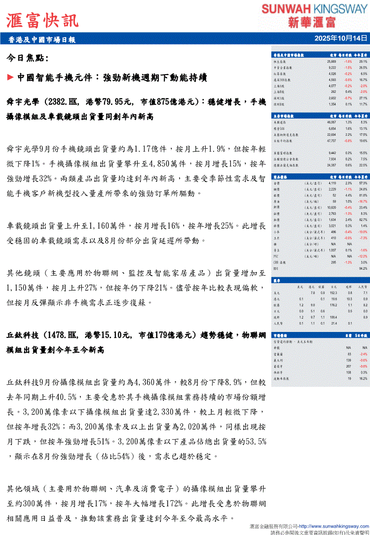 新华汇富-汇富快讯:香港及中国市场日报-251014