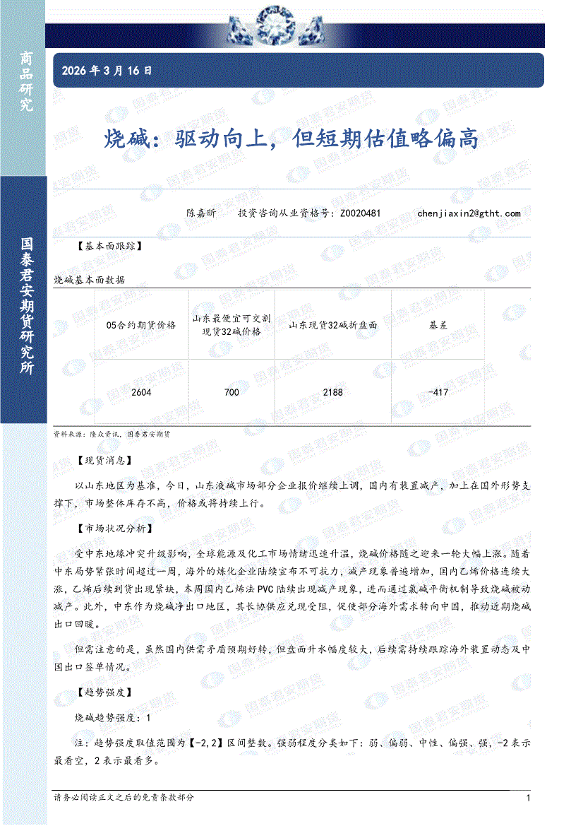 国泰君安期货-烧碱:驱动向上,但短期估值略偏高-260316