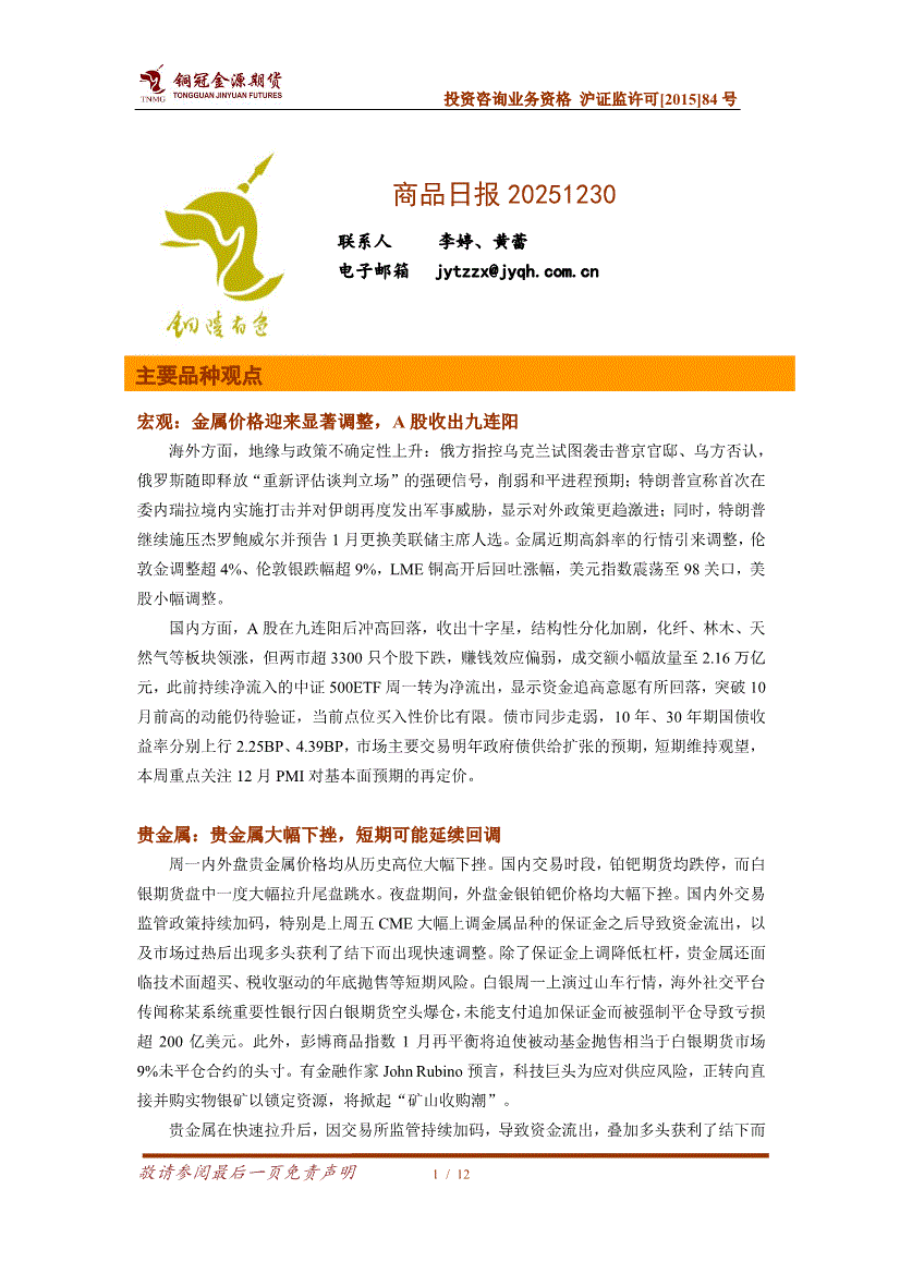 铜冠金源期货-商品日报-251230