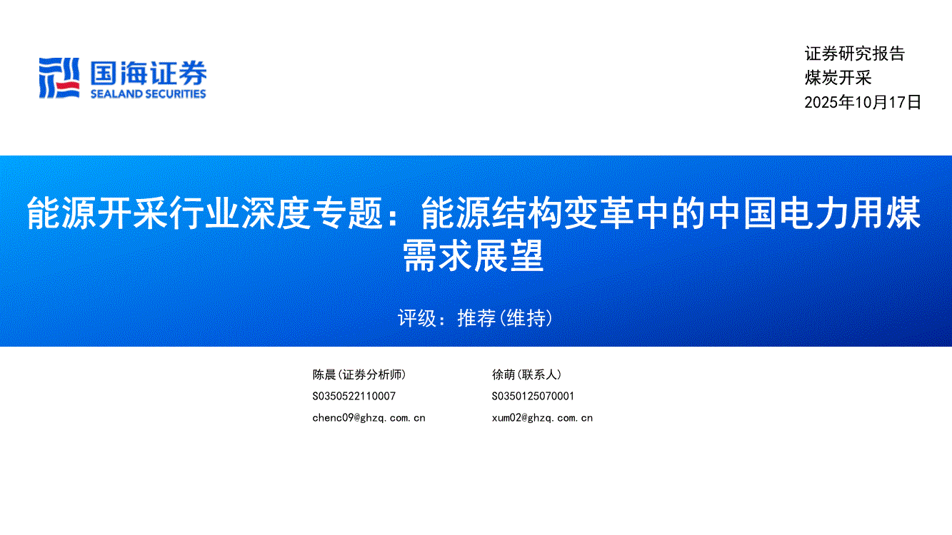 能源开采行业:国海证券-能源开采行业深度专题:能源结构变革中的中国电力用煤需求展望-251017