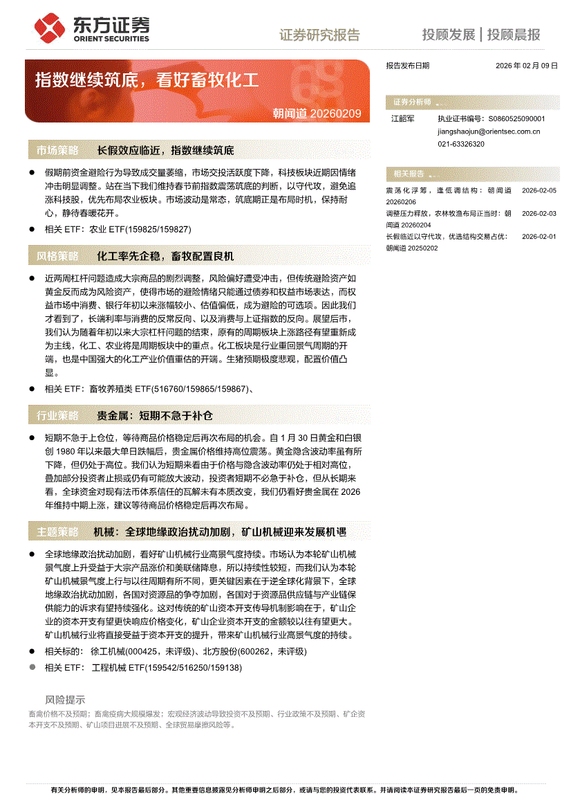东方证券-朝闻道:指数继续筑底,看好畜牧化工-260209