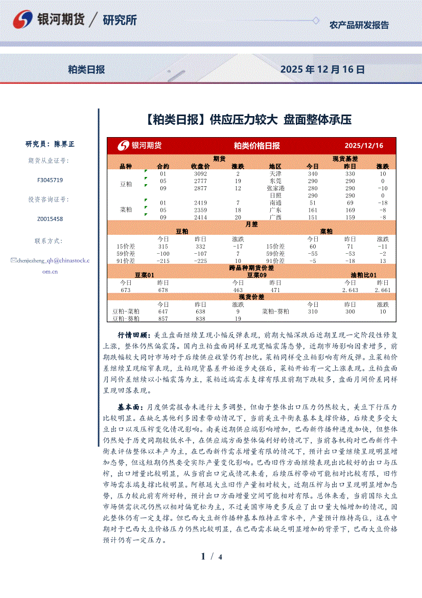 银河期货-【粕类日报】供应压力较明显,盘面继续承压-251218