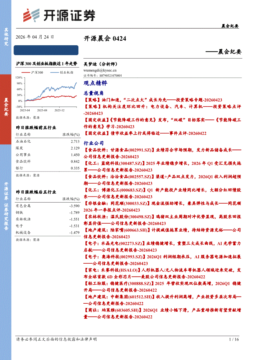开源证券-晨会纪要-260416