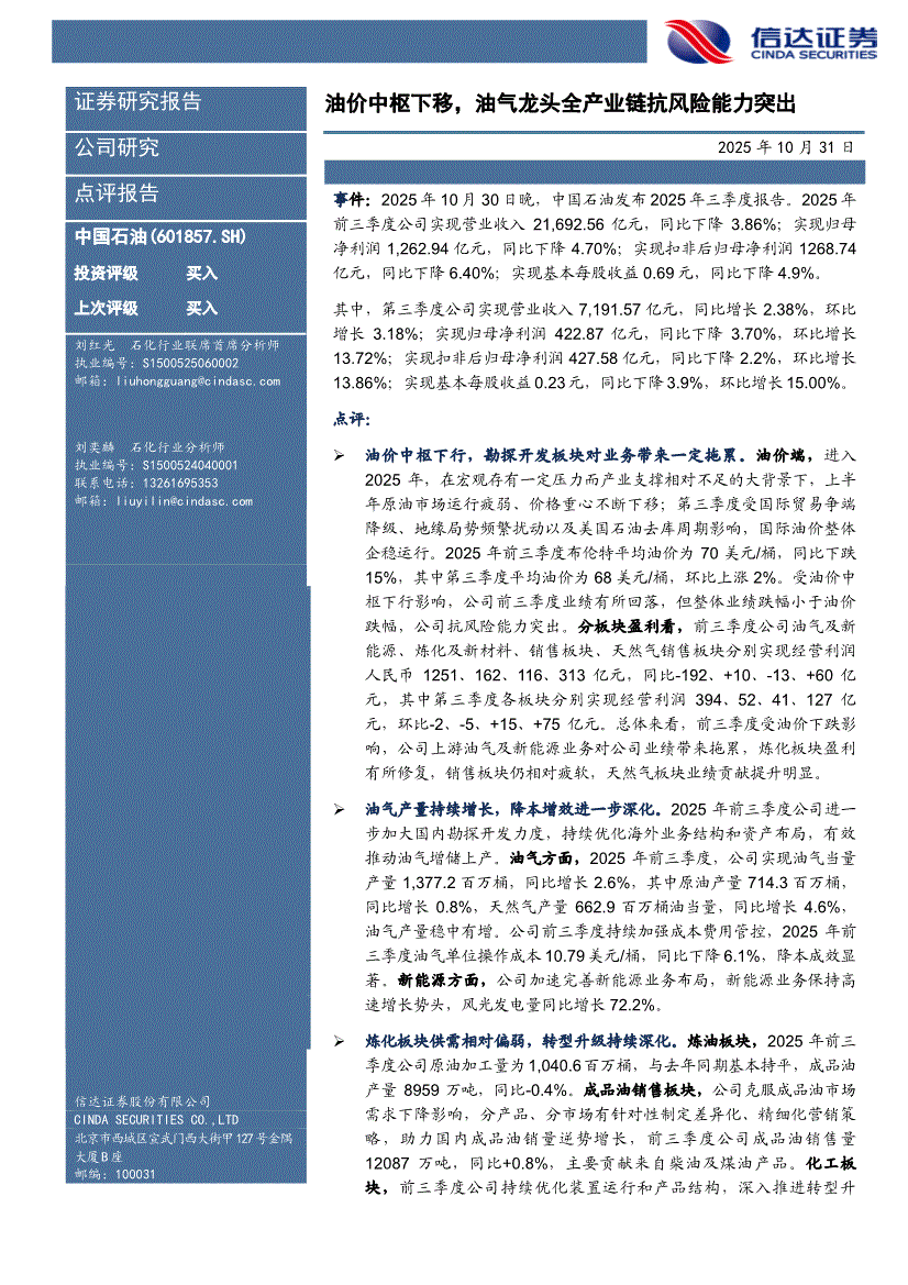 中国石油:信达证券-中国石油-601857-油价中枢下移,油气龙头全产业链抗风险能力突出-251031
