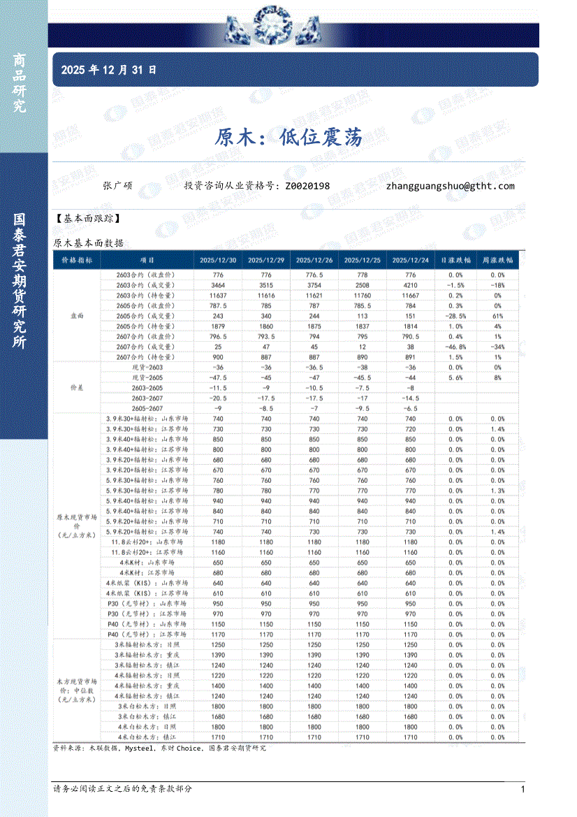 国泰君安期货-原木:低位震荡-251231