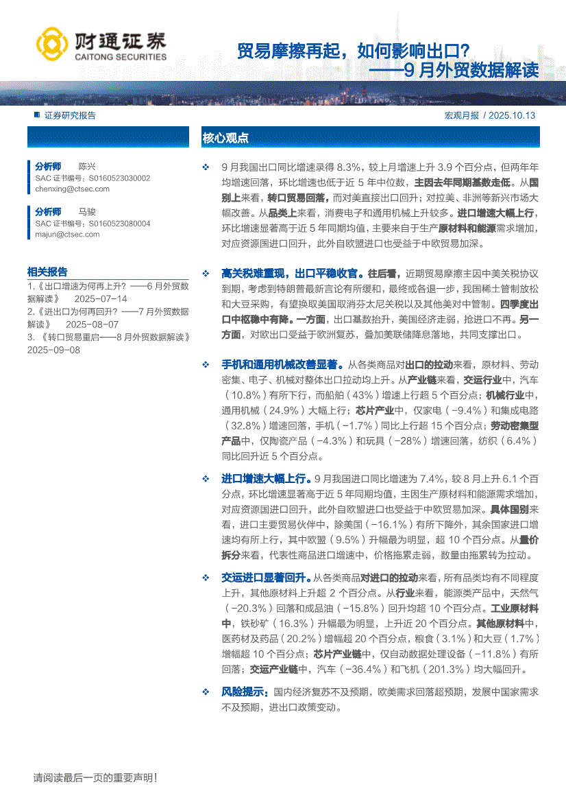财通证券-9月外贸数据解读:贸易摩擦再起,如何影响出口?-251013