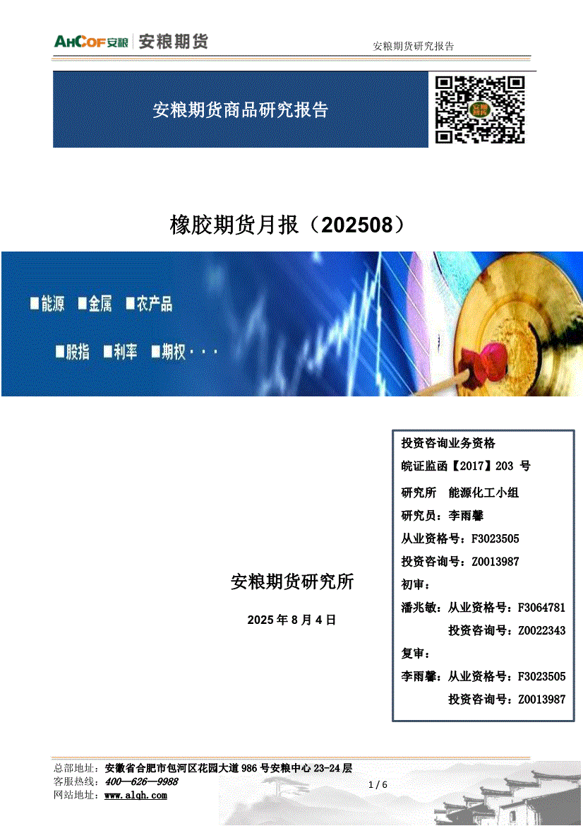 安粮期货-橡胶期货月报(202508):橡胶同国内板块市场共振,但总体基本面偏弱-250804