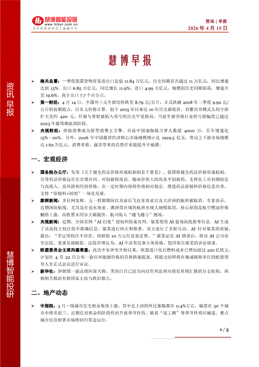慧博智能投研-慧博早报-260415