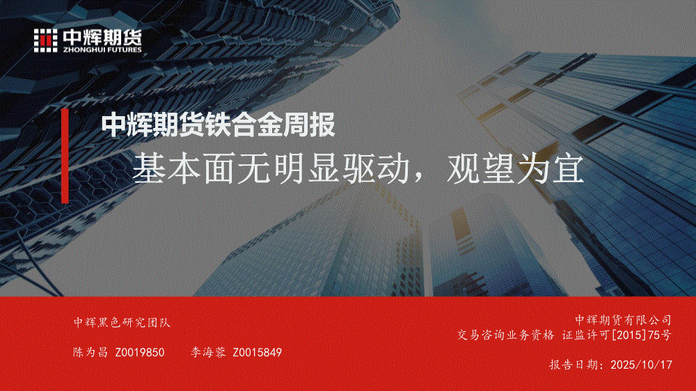 中辉期货-铁合金周报:基本面无明显驱动,观望为宜-251017