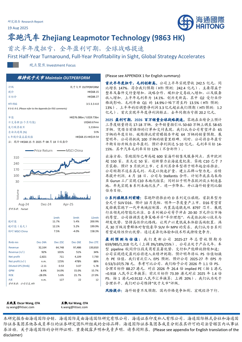 零跑汽车:海通国际-零跑汽车-9863.HK-首次半年度扭亏,全年盈利可期,全球战略提速-250819