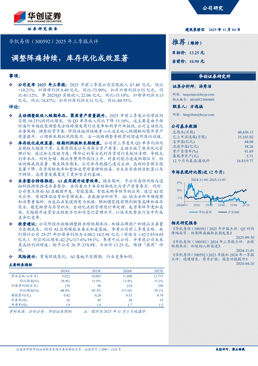 华凯易佰:华创证券-华凯易佰-300592-2025年三季报点评:调整阵痛持续,库存优化成效显著-251104