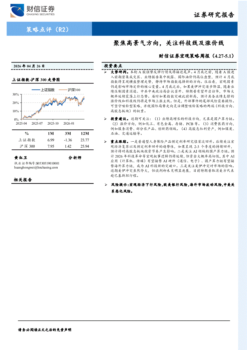 财信证券-宏观策略周报:聚焦高景气方向,关注科技线及涨价线-260426
