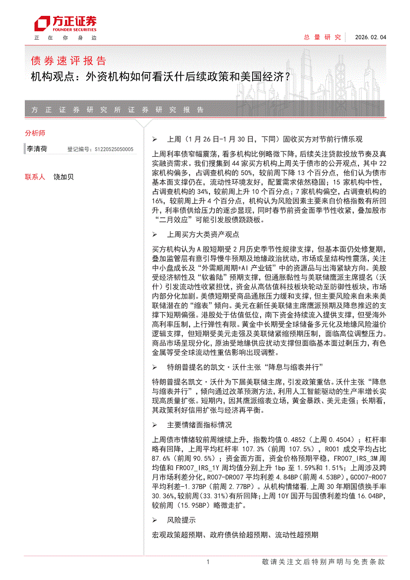 方正证券-机构观点:外资机构如何看沃什后续政策和美国经济?-260204