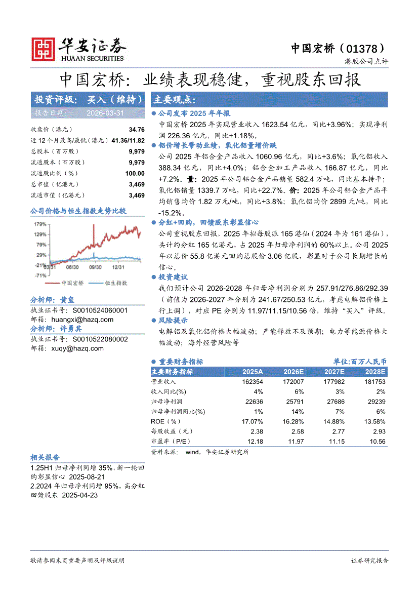 中国宏桥:华安证券-中国宏桥-1378.HK-中国宏桥:业绩表现稳健,重视股东回报-260331
