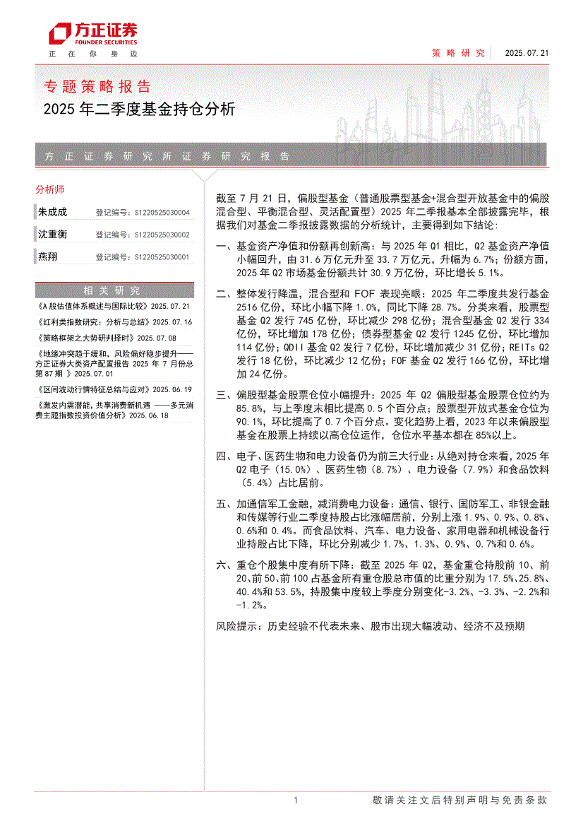 方正证券-专题策略报告:2025年二季度基金持仓分析-250721
