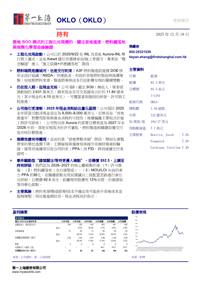 OKLO:第一上海-OKLO-OKLO.US-微堆BOO模式的工程化兑现标的,关注首堆进度、燃料链落地与规模化学习曲线验证-251218
