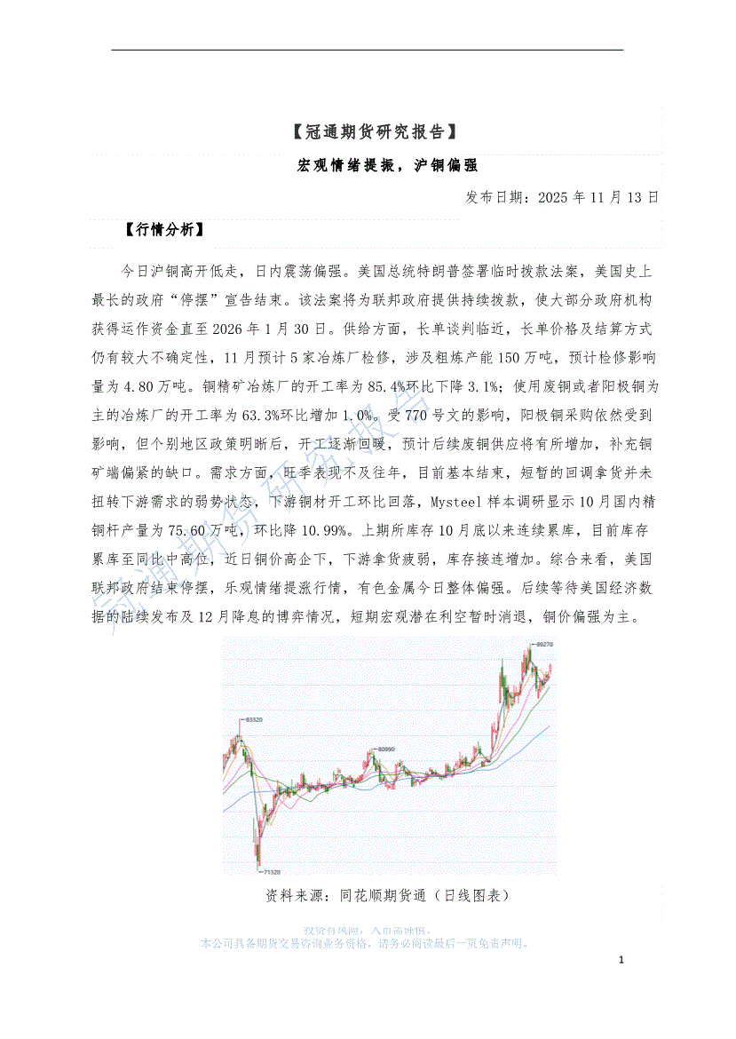 冠通期货-宏观情绪提振,沪铜偏强-251113