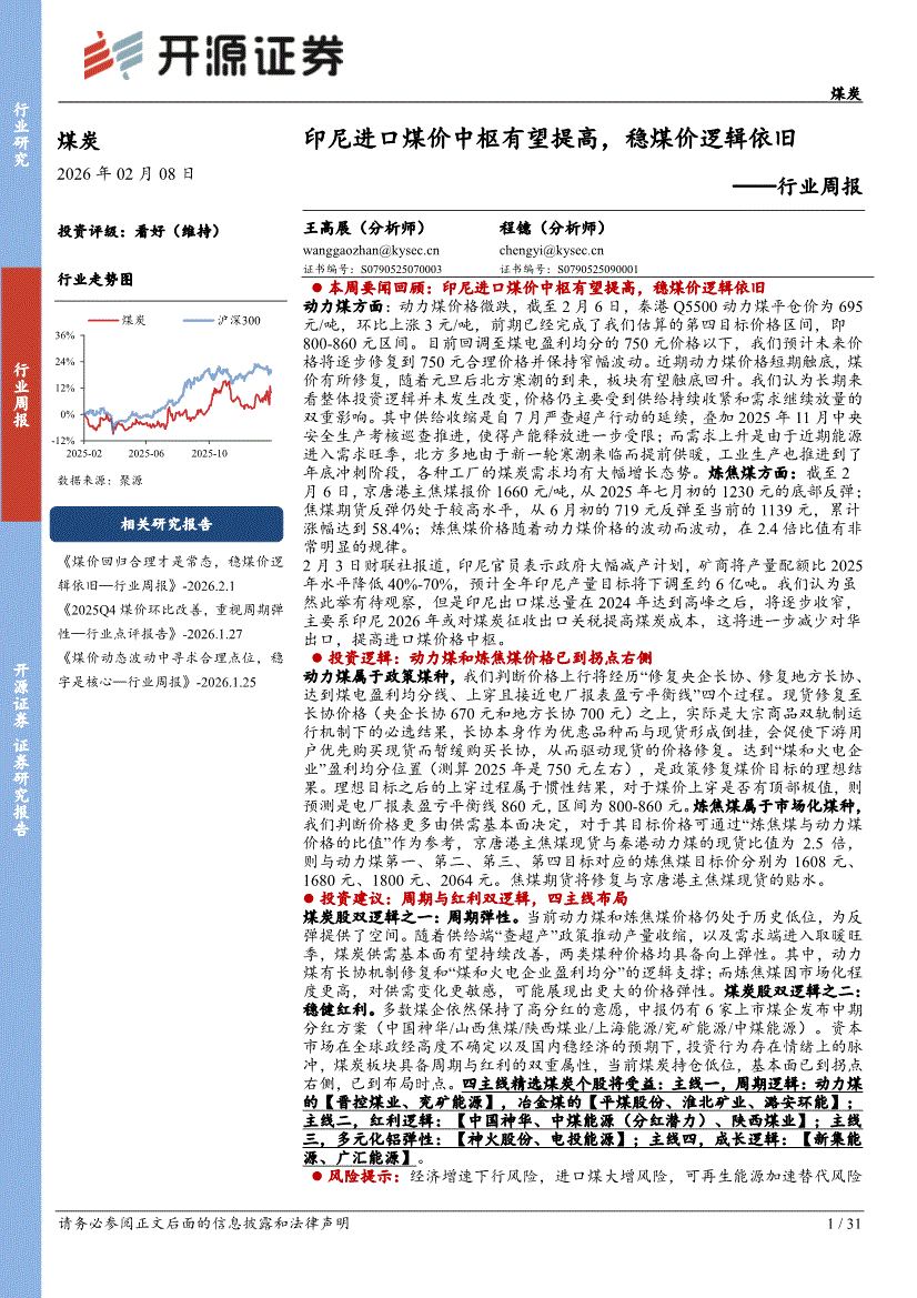 煤炭行业:开源证券-煤炭行业周报:印尼进口煤价中枢有望提高,稳煤价逻辑依旧-260208