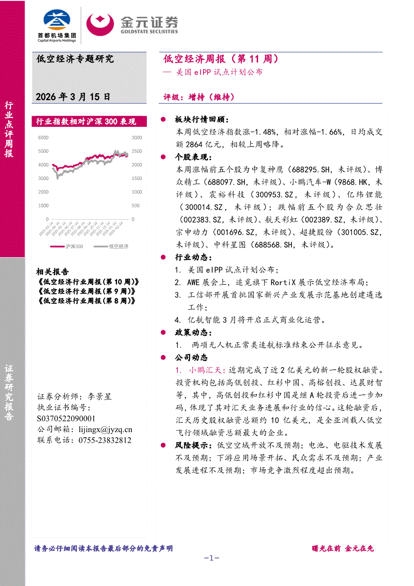 低空经济行业:金元证券-低空经济行业周报(第11周):美国eIPP试点计划公布-260315