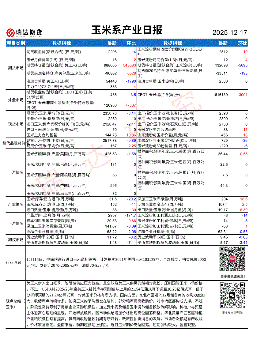 瑞达期货-玉米系产业日报-251216