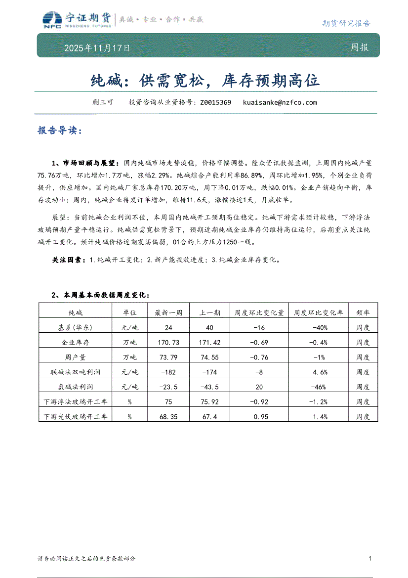 宁证期货-纯碱周报:供需宽松,库存预期高位-251117