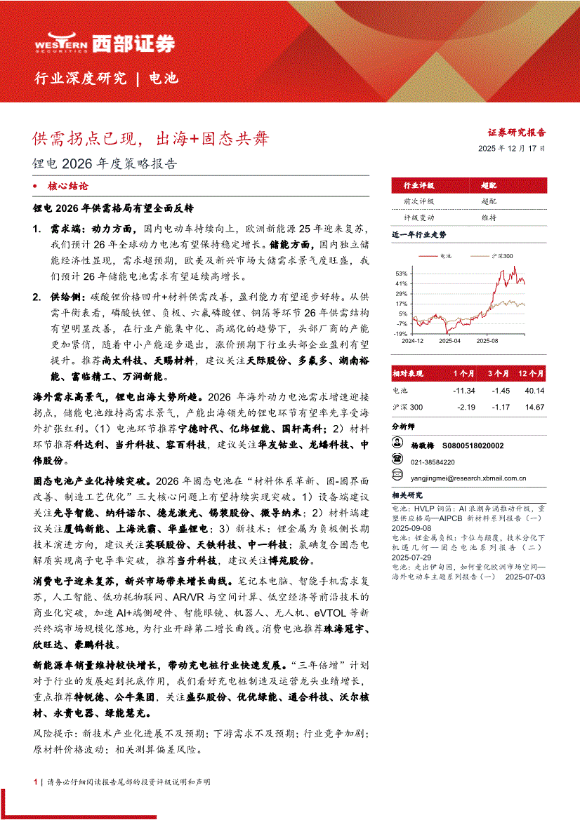 锂电行业:西部证券-锂电行业2026年度策略报告:供需拐点已现,出海+固态共舞-251217