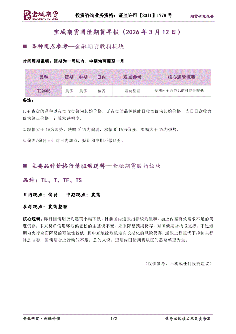 宝城期货-国债期货早报-260312