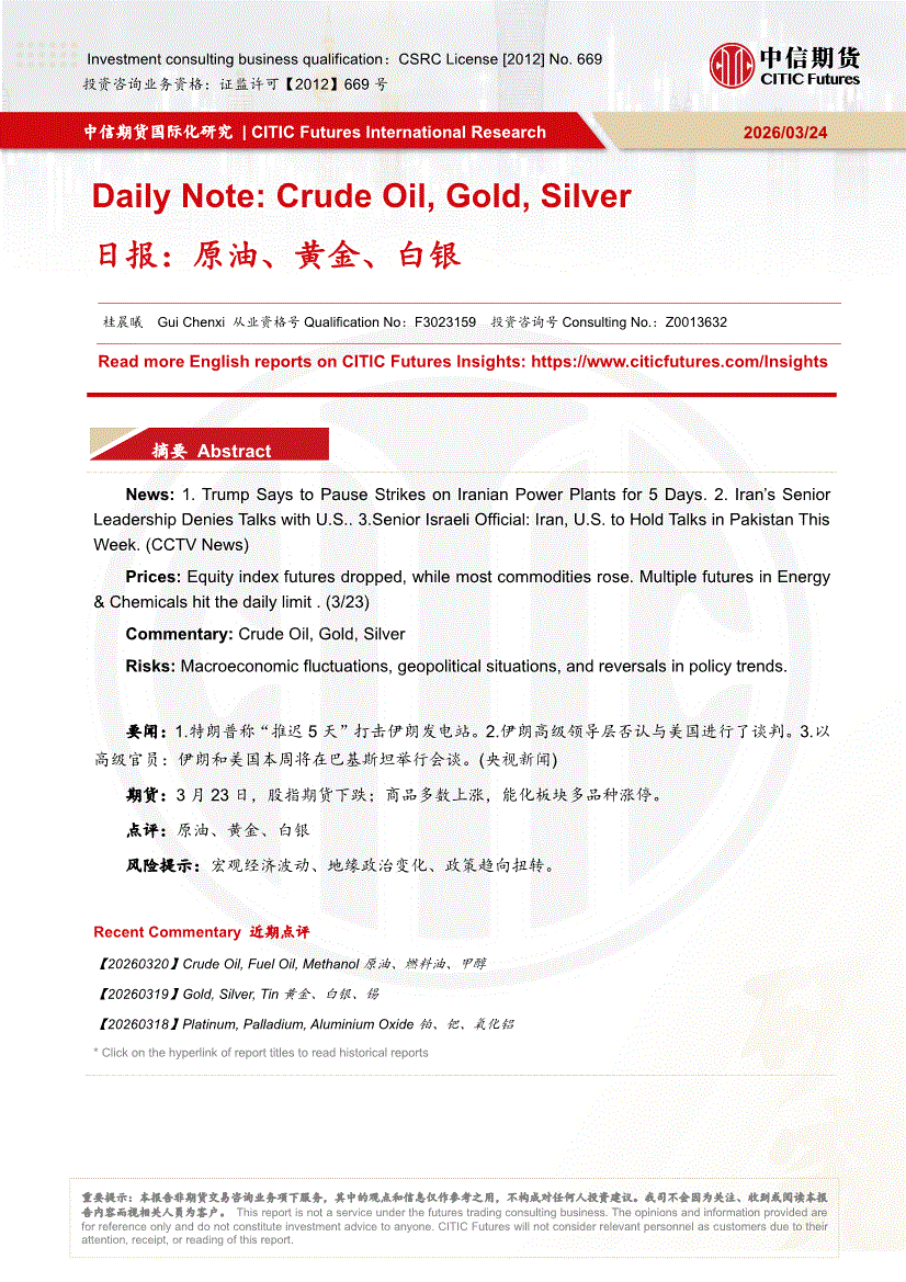 中信期货-日报:原油、黄金、白银-260324