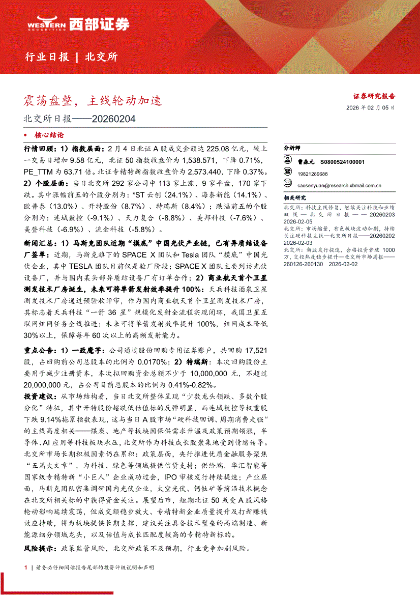 西部证券-北交所日报:震荡盘整,主线轮动加速-260205