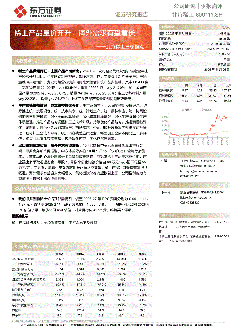 北方稀土:东方证券-北方稀土-600111-稀土产品量价齐升,海外需求有望增长-251105