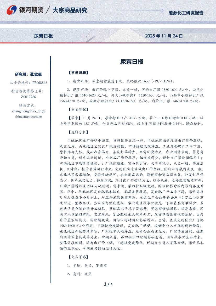 银河期货-下游逢低补货,尿素震荡为主-251121