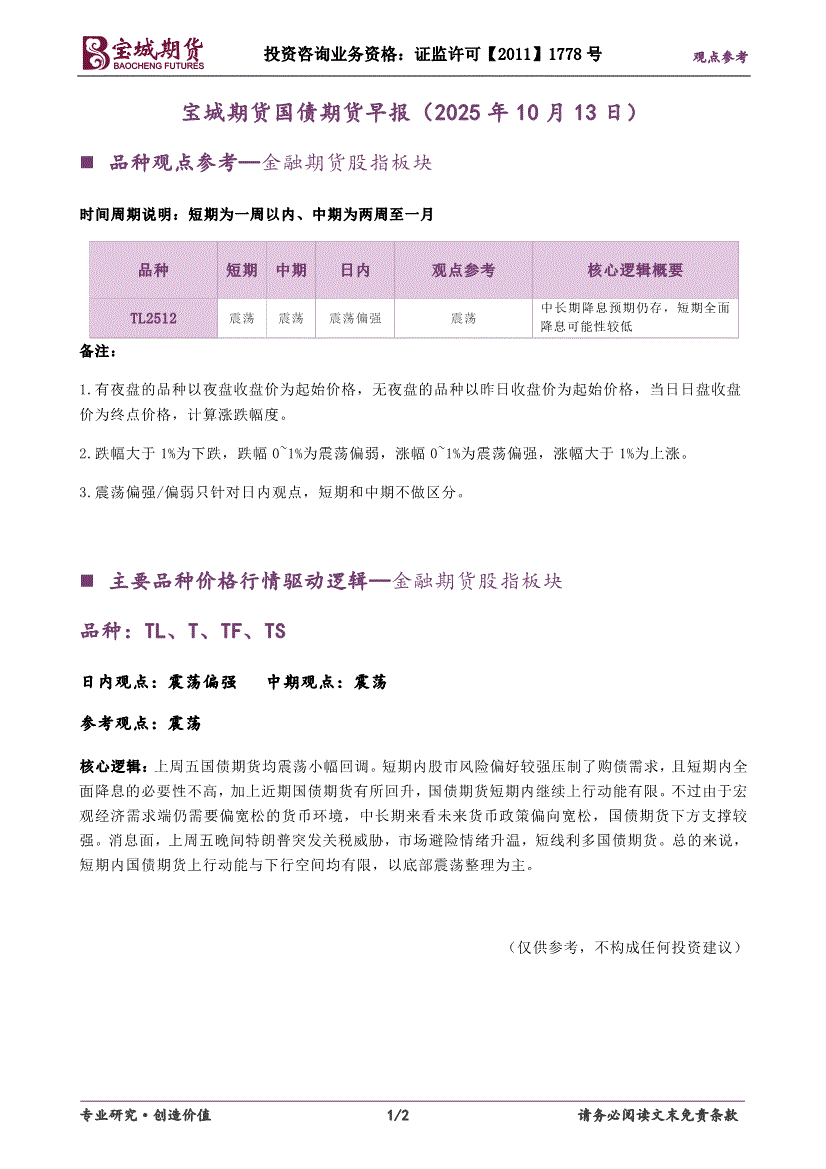 宝城期货-国债期货日报:国债期货震荡整理为主-251015