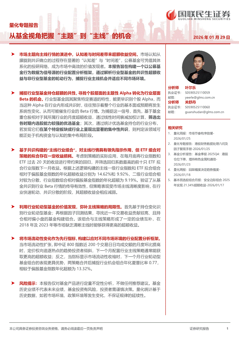 国联民生证券-量化专题报告:从基金视角把握“主题”到“主线”的机会-260129