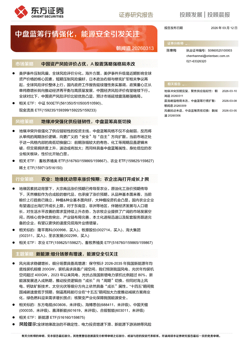 东方证券-朝闻道:中盘蓝筹行情强化,能源安全引发关注-260312