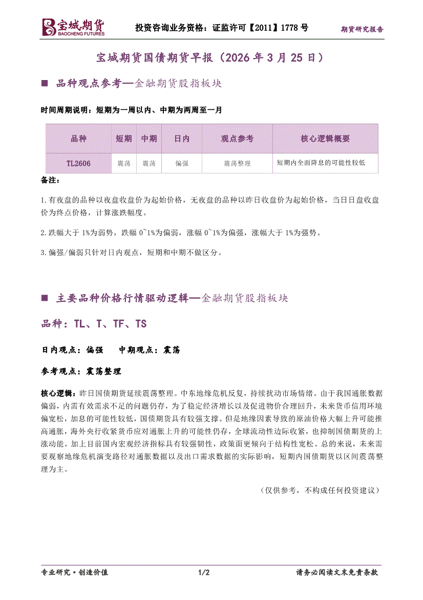 宝城期货-国债期货早报-260325