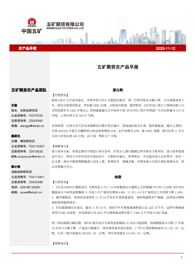 五矿期货-蛋白粕周报:南美播种顺利施压盘面-251122