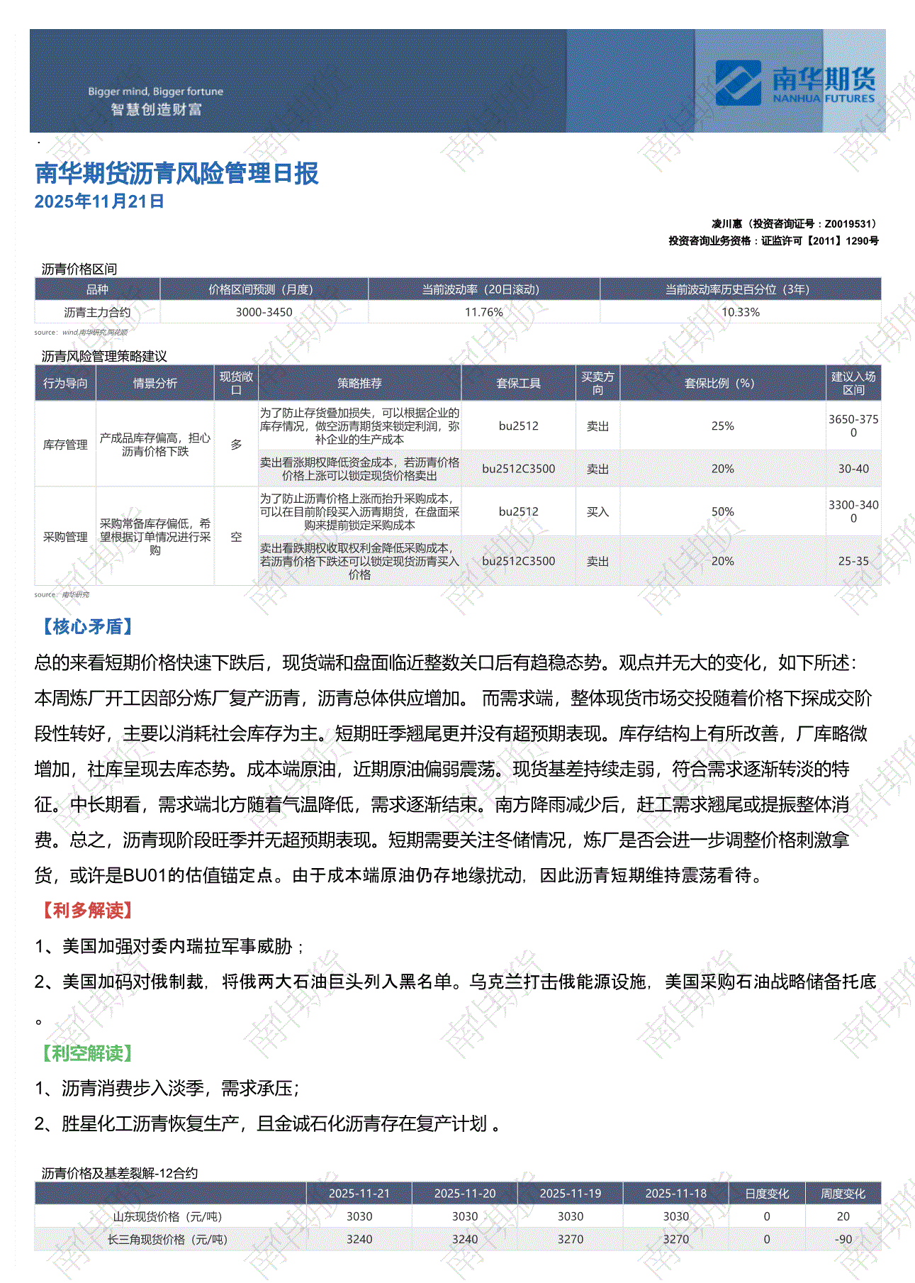 南华期货-沥青风险管理日报-251121